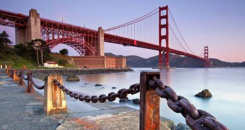 早餐后前往▲【17英里海岸线】(不低于60分钟),沿蒙特雷半岛游览美丽的太平洋海岸风光,沿途风光极佳:轻柔的海风、蜿蜓的海岸、澎湃的浪花、奇形的礁石、还有可爱的海狗海狮徜徉其间;亿万富豪的别墅美伦美奂,世界顶级的高尔夫球场(多次举办过大满贯)绵延不止… 十七英里的海景令人心旷神怡。随后继续乘车前往旧金山,抵达后游览红色的【金门大桥】(不低于25分钟),金门大桥是世界著名的桥梁之一,也是近代桥梁工程的一项奇迹,被认为是旧金山的象征。【艺术宫】(不低于15分钟),是座仿古罗马废墟的建筑,罗马式的圆顶配上玫瑰红的科林斯石柱,顶面上浮凸着一幅幅精细的浮雕,这几乎是每个人最喜爱的旧金山名胜;【九曲花街】(不低于30分钟)被誉为是世界上最弯曲的街道,一个短短的街区,却有八个急转弯,因为有40度的斜坡,且弯曲像“Z”字形,所以车子只能往下单行。紧接前往富有意大利风情的【渔人码头】(不低于25分钟),许多购物中心和饭店均坐落在交通便利的渔人码头地区,街上的乐师和艺术家们的表演也是一个接一个,渔人码头已经成为了旧金山的热门观光景点。晚餐后入住酒店休息。