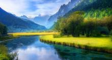 沿途雪山、原始森林和田园风光交相辉映,景色出奇的美丽。八宿藏语意为“勇士山脚下的村庄”,海拔3910米。沿途雪山、原始森林和田园风光交相辉映,景色出奇的美丽。最后到达然乌沟。然乌湖是著名的高原冰川湖,面积22平方公里,海拔3850米。湖畔是茂密的原始森林,碧蓝的湖水,森林倒映,清澈见底,湖面的水鸟成群,一派仙境景色。来到这里会让人躁动的心沉静下来,湖水如一面镜子般平静无澜,映衬着湖边晶莹的冰川、皑皑的雪山,如一个待嫁的娇娘,动人心魄。