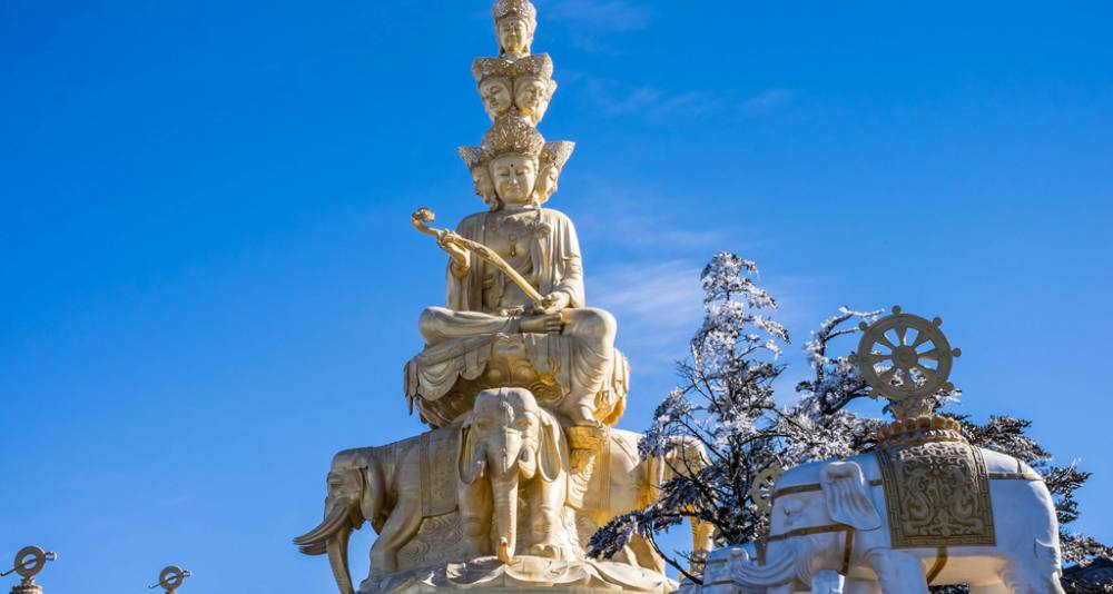 景区观光车前往万年停车场,后乘索道【索道费用自理】上行至万年索道站,步行至普贤菩萨道场---