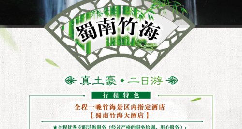 全程一晚竹海景区内指定酒店 :蜀南竹海大酒店; 全程优秀专职导游服务、经过严格的服务培训,用心服务。