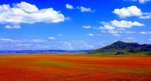 从成都出发进入红原县境内的—龙日坝大草原,沿着大草原一直到达红原——月亮湾风景区(游览时间不少于45分钟),在月亮湾一边游揽景区内美丽的草原风光,在大草原上一边游览沿途美丽的草原风光。