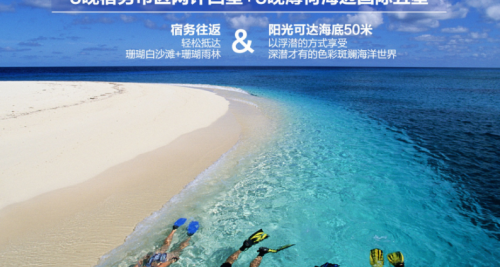 l 探索处女岛:一个无人小岛,隐藏在冰蓝色薄荷海之中;小岛有着两道美丽的半月形环带白沙滩,中间围绕着翠绿的泻湖。退潮时候可上岛,寻找各色的海星、品尝新鲜的海胆、海参等海鲜。