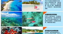 探索处女岛:一个无人小岛,隐藏在冰蓝色薄荷海之中;小岛有着两道美丽的半月形环带白沙滩,中间围绕着翠绿的泻湖。退潮时候可上岛,寻找各色的海星、品尝新鲜的海胆、海参等海鲜。