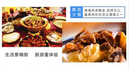 用餐:全程含3正2早1路餐 1特色彝族大餐(正餐为八菜一汤(4荤4素)