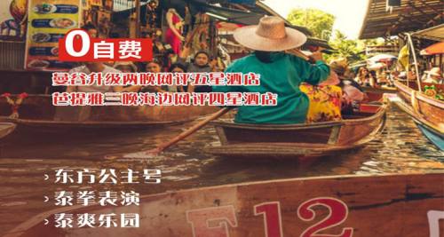 早餐后参观【皇家珠宝展示中心】泰国是世界上为数不多的高质量宝石出产国之一,其份量占世界宝石矿产业的35%,这里所展示的宝石饰品具有ISO 9001国际品质认证,以巧夺天工的设计,其精湛的技艺手法,汇集款式新潮时尚,因卓越品质而享誉全球。午后餐后乘车前往泰国最具特色的【爽泰欢乐度假庄园】充分感受东南亚异域风情带给你的无限惊喜(游览180 分钟);观赏园内:1、泰式风情园(泼水节,水灯节))2、泰式6 部文化传统舞蹈表演3、骑大象4、坐马车5、船游水上乐园6、水果大餐 7、观赏手工编织品。随后去往【富贵黄金屋】参观做客,它是泰国首富、正大集团董事长谢国民先生为母亲建的私人庄园。它也是台湾偶像剧《流星花园》的取景地。晚餐我们将在这里享用千人宴,傍晚【东方公主号或暹罗公主号】(约60分钟),船上有歌舞秀表演并可享受美味可口的精致晚餐,及酒水无限量招待,并与泰国醉美的人妖共舞。结束之后返回酒店。