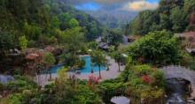 早餐后乘车酒店享用早餐后,前往游览【热海公园】探秘腾越之地亿万年的火山地热奇观,腾冲热海,位于腾冲城约11公里处,每一天,那喷薄而出的热泉挂起一圈圈的五彩霓虹都在时刻发生。它北起硫磺塘,南接松山箐,东到忠孝寺,西连芭蕉园,也是中国的第二大热田。热海,它并不是一片海,而是一个热气蒸腾的山谷。徐霞客在他的游记中这样描写热海的:其崖皆堆云骈瓣,岭岈嵌空,或下陷上连,或旁通侧裂,人从其上行,热气从下出。整个热海景区,被腾冲的澡塘河环绕,依山蜿蜒,热泉高低错落,山谷密林中、崖壁间、地面上,到处都有热气喷涌而出。其中著名的有大滚锅、鼓鸣泉、珍珠泉、眼镜泉、怀胎井、仙人澡塘、蛤蟆嘴、澡塘河瀑布等。