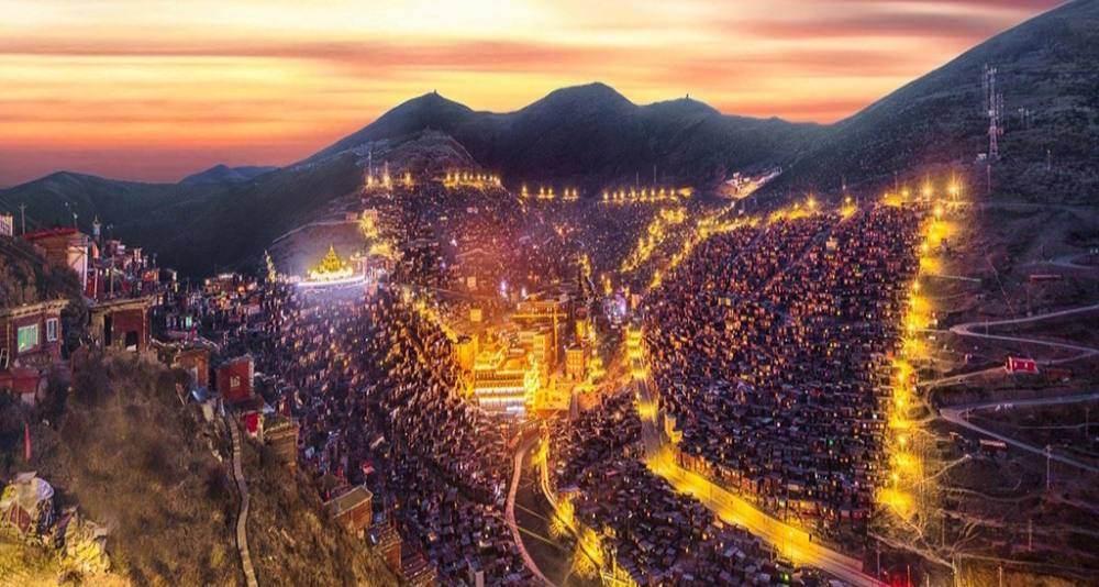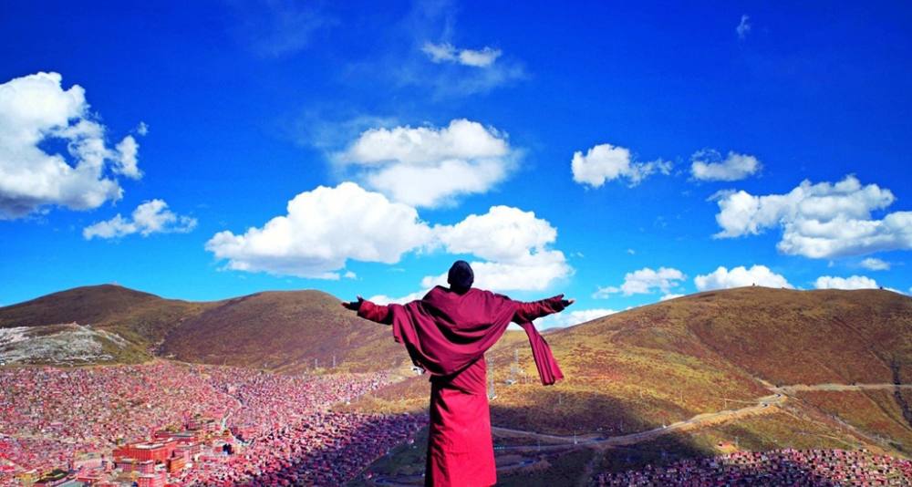 下午约16:00左右车到达喇荣五明佛学院大门,下车后需步行200多米到达佛学院停车场。在停车场换乘佛学院公交车上山,自理4元/人(旺季需排队,敬请理解)。随车而上,震撼的佛国画卷渐渐呈现在眼前------漫山遍野的红房子,裹着红袍的僧人在其间穿行,金碧辉煌的佛学院,蓝天白云下气势宏伟的坛城(海拔4000米)。公交车行至觉姆经堂或大经堂,步行至喇荣宾馆或临近喇荣宾馆的红房子僧舍安排入住。随后自由活动。漫步学院小路,与信徒和僧人交流、转经、朝拜,体验僧人修行方式,在转经筒持续的旋转中,感受信仰的强大、内心的宁静。