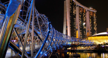 新加坡地标性建筑--【金沙酒店及金沙娱乐城】,滨海湾金沙酒店坐落于 Marina Bay 滨海湾,由三座连成一串的酒店大楼组成,顶部建有景色壮观的空中花园。